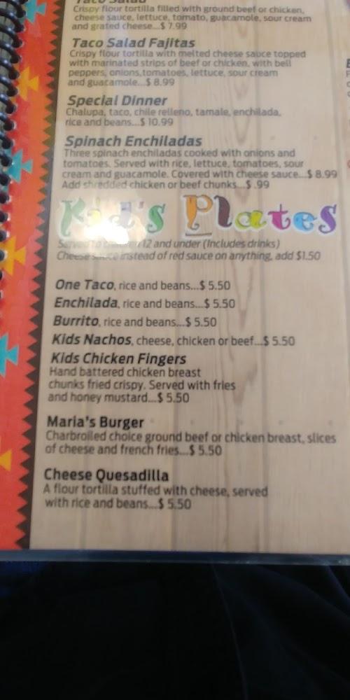 The menu at Maria Mexican Restaurant is extensive and diverse. Highlights include traditional favorites like tacos, burritos, and enchiladas. Their vegetarian offerings ensure everyone finds something to love. Guests often rave about the Steak Tampiqueño and Pollo Poblano. Lunch specials attract locals, with options like Maria's Burrito and Taco Salad Fajitas. The average price is around $15.95, offering great value. Overall, the menu promises something for everyone's taste and makes every visit memorable.